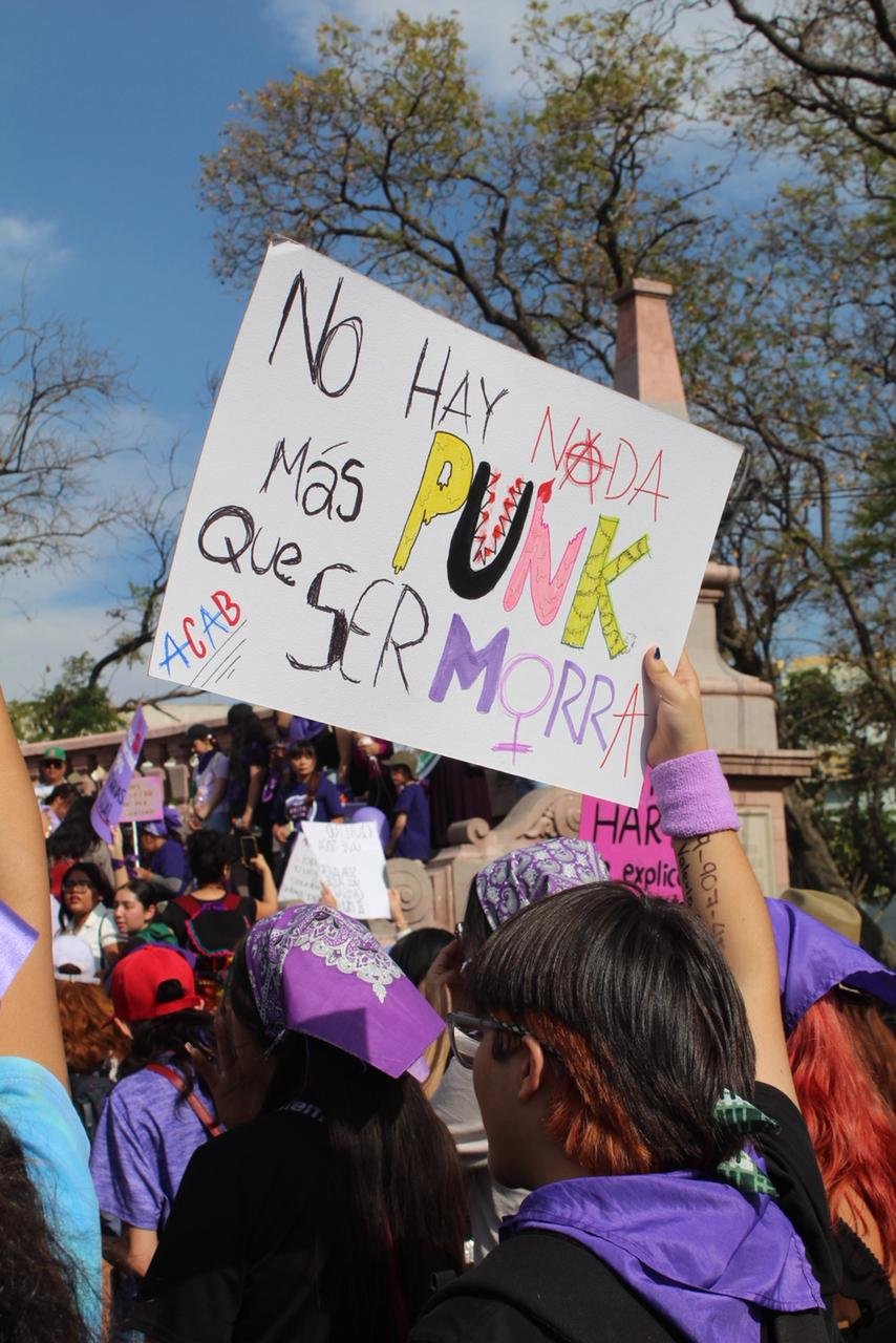 Madres con sus hijas sobre los hombros. Maestras con mensajes que retaban incluso a sus propias aulas. Jóvenes con testimonios que por años permanecieron en silencio. Abuelas con pañuelos morados. Mascotas que, sin saberlo, también marcharon. La columna se fue armando poco a poco hasta convertirse en una suma de historias distintas unidas por la misma urgencia.